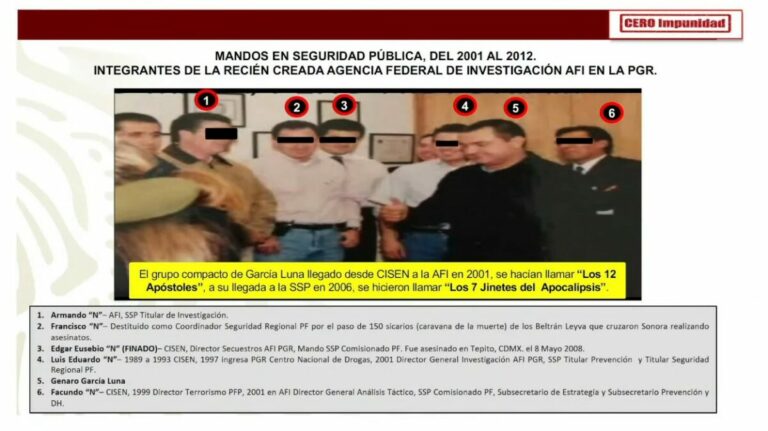 El conjunto, apodado anteriormente “Los 12 apóstoles” llegó desde el entonces Centro de Investigación y Seguridad Nacional (CISEN) a la Agencia Federal de Investigación (AFI) de la entonces Procuraduría General de la República (PGR) en 2001.