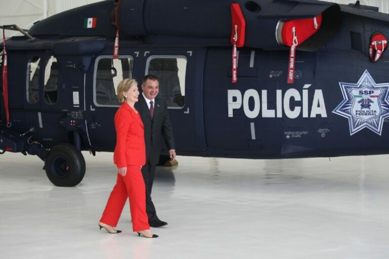 En 2009, el ex funcionario acompañó a la entonces secretaria de Estado estadunidense, Hillary Clinton, en una visita a instalaciones de la SSP.