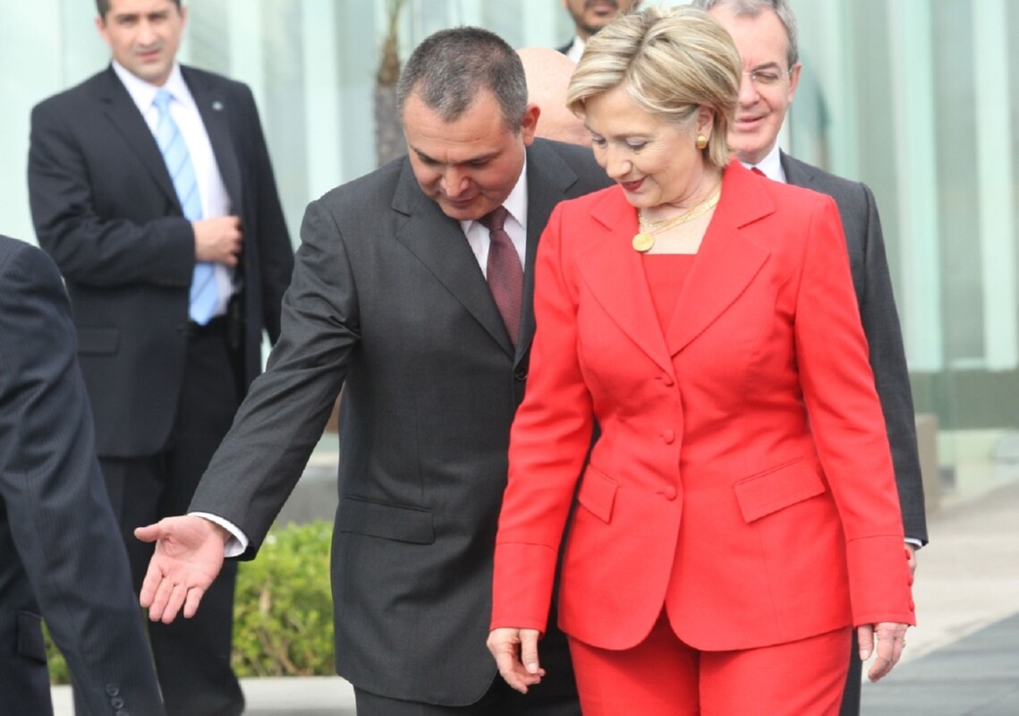 Genaro García Luna durante la visita de la exsecretaria de Estado de EU, durante  la era de Barck Obama, Hillarý Clinton.