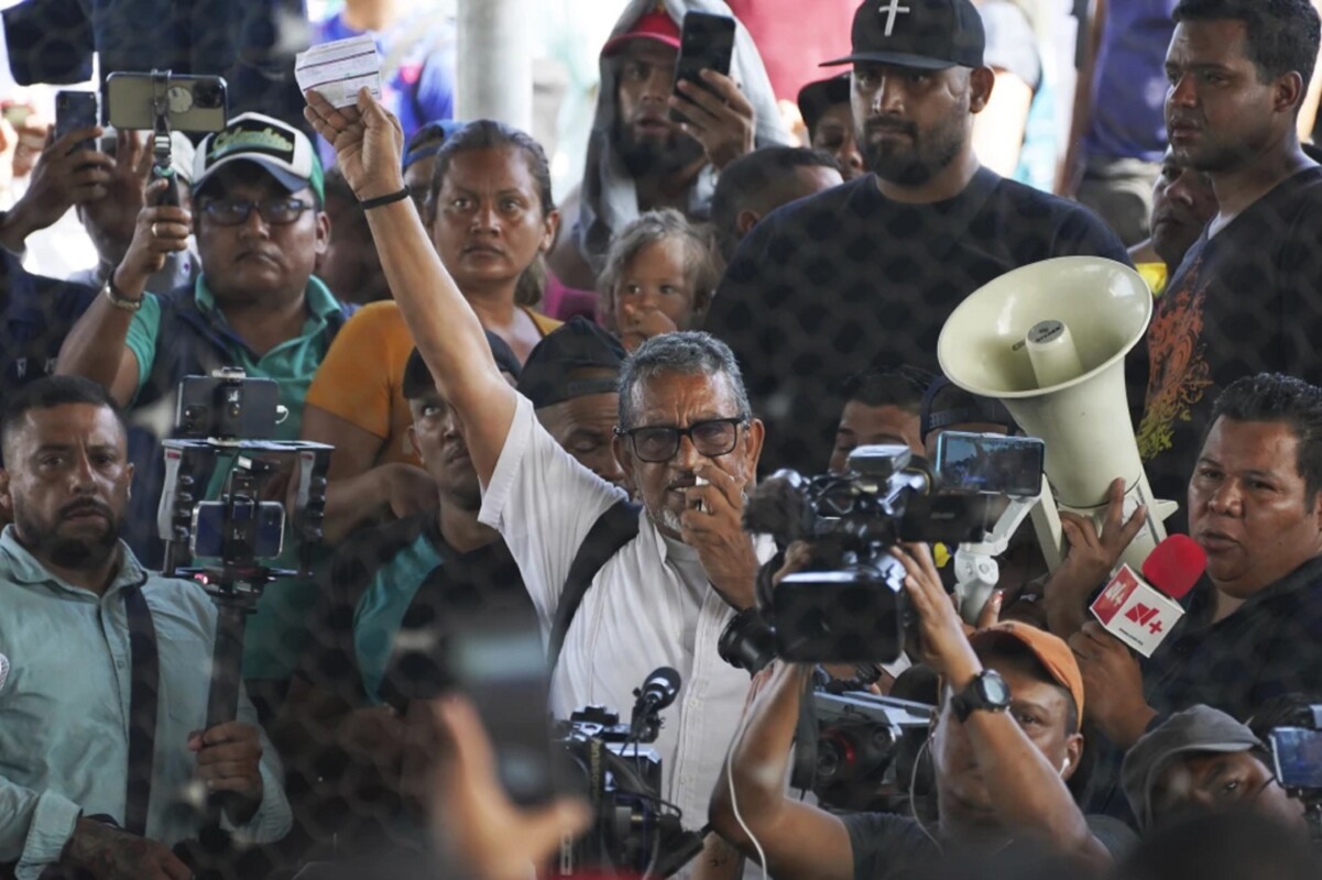 Los migrantes caminaban bajo la mirada de agentes migratorios, marinos, policías y paramédicos e iban acompañados del sacerdote Heyman Vázquez, que calificó la detención de García Villagrán de “injusta”.