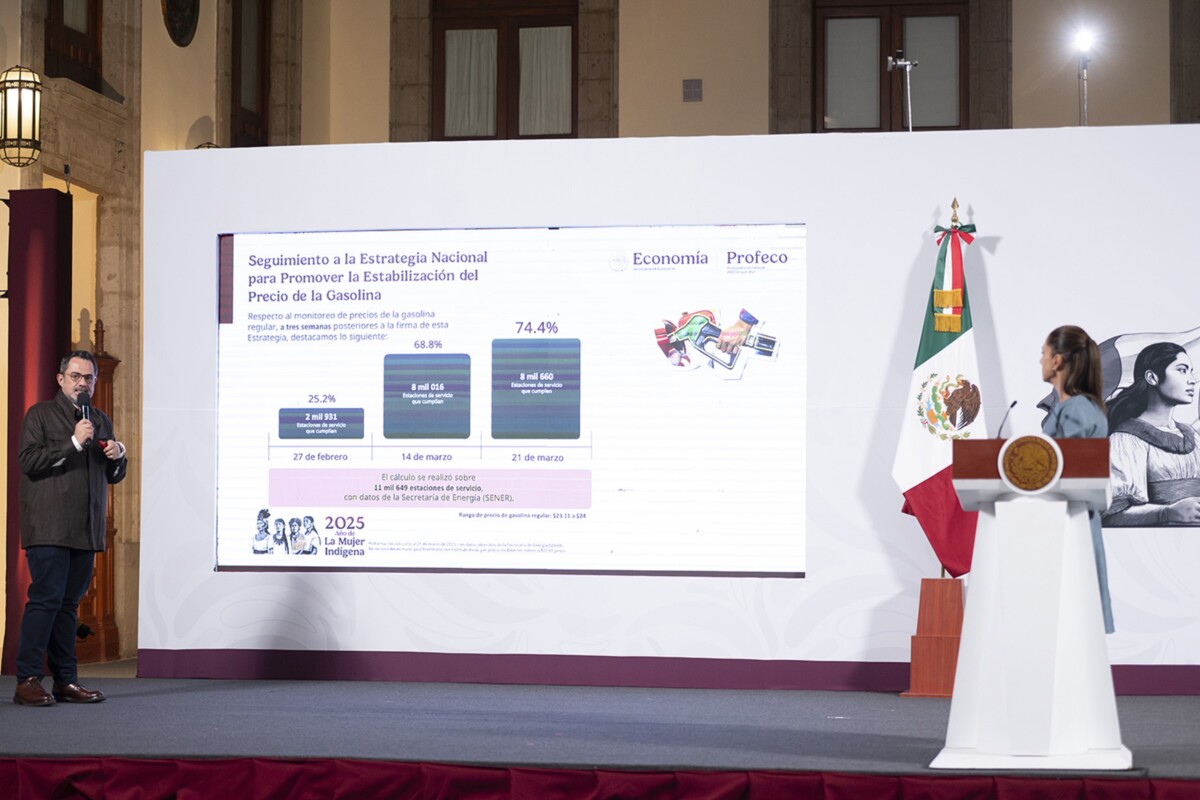 Iván Escalante, titular de la Procuraduría Federal del Consumidor (Profeco), indicó que esta cifra es con corte al viernes 21 de marzo, y que el porcentaje de cumplimiento equivale a 8 mil 660 estaciones de servicio.