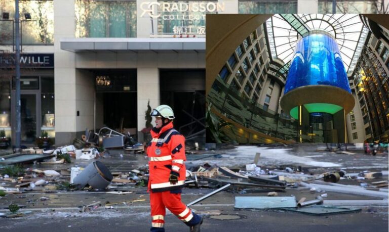 Por lo cual decenas de transeúntes también pudieron ver los restos del acuario que alcanzaron la calle donde está ubicado el hotel Radisson Blu, en el sector de Alexanderplatz, en el centro de la ciudad.Se desconoce qué causó la explosión.