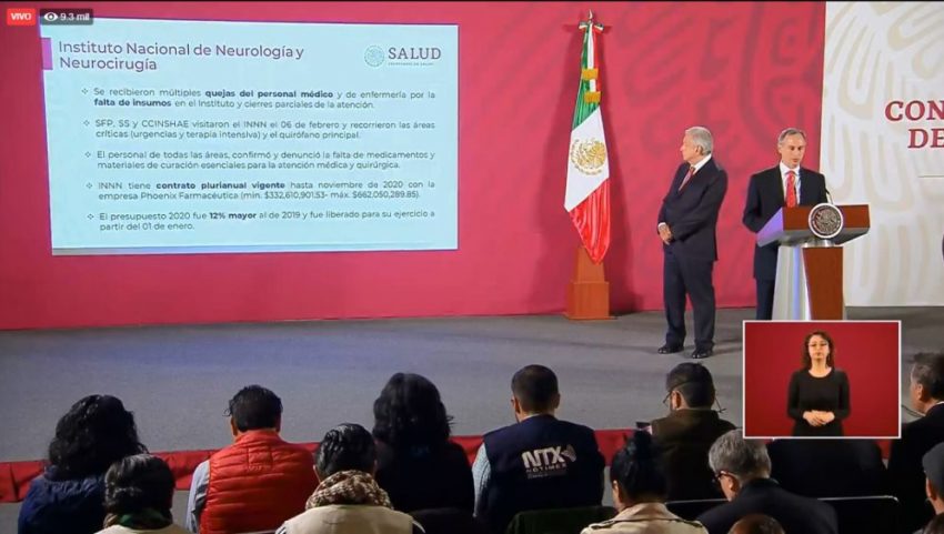 Tal fue el caso del Instituto Nacional de Neurología y Neurocirugía (INNN), del que dijo: “teníamos antecedentes de quejas por parte del personal médico y enfermería por falta de insumos y esto motivó una visita de supervisión, de inspección pública. Esto detonó una visita de autoridades en la que los trabajadores expresaron las deficiencias en material de curación esenciales para la atención médica y quirúrgica”.