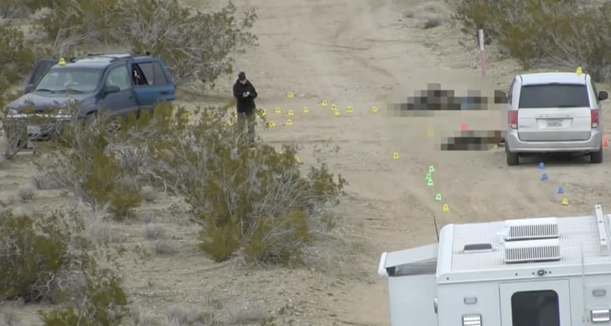 Los cuerpos de seis personas fueron encontrados en un remoto cruce de caminos de tierra en el desierto de Mojave, una escena descrita como tan espantosa que las estaciones de televisión del sur de California desdibujaron algunas de las imágenes capturadas por sus helicópteros sobre sus cabezas.