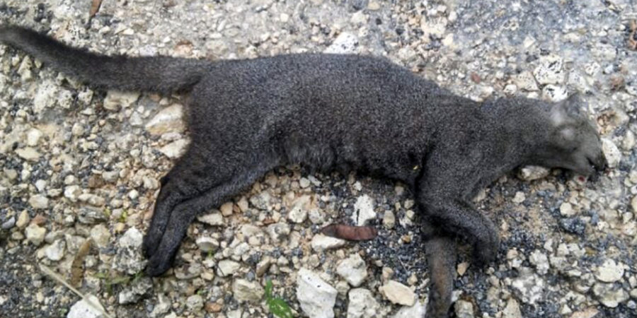 Hallan animal ‘extraño’ en la carretera: es el tercero en lo que va de 2020.- En Sinanché, Yucatán, un animal con características como las de un gato fue hallado sin vida en la carretera que conduce a San Crisanto.