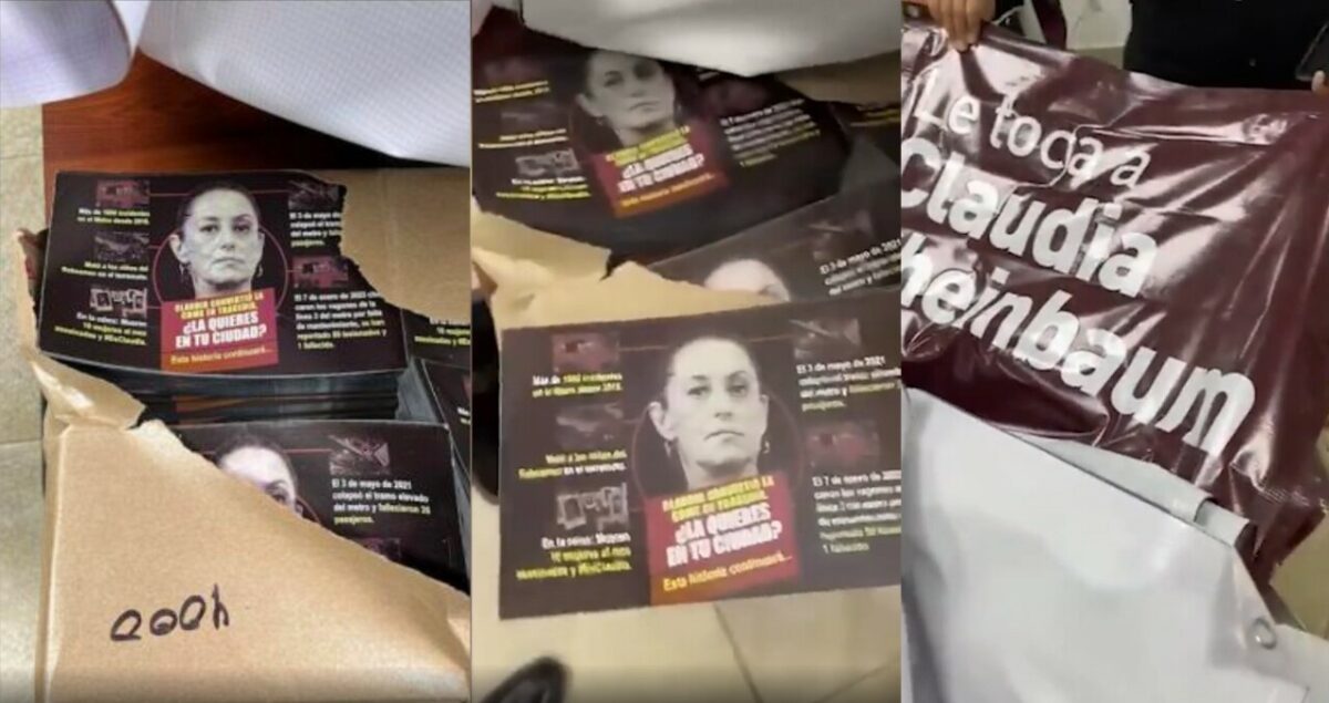Se trata de 13 paquetes encontrados por la Secretaría de la Contraloría General, con folletos y mantas con las leyendas: “Le toca a Claudia, pero con gusto atendemos. Sandra Cuevas, alcaldesa de Cuauhtémoc” y “Claudia convirtió la CDMX en tragedia. ¿La quieres en tu ciudad?”, entre otros señalamientos contra la figura de la jefa de Gobierno.