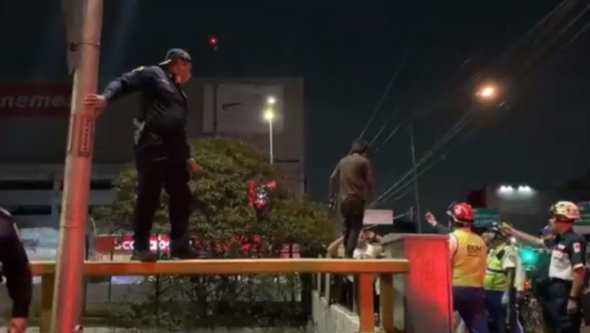 En un video que circula en redes sociales, se observa al joven arriba del muro de contensión de la avenida y a un grupo de hombres pertenecientes al Escuadrón de Rescate y Urgencias Médicas (ERUM), policías y personal de la Cruz Roja tratando de persuadirlo para que no se arroje al vacío.