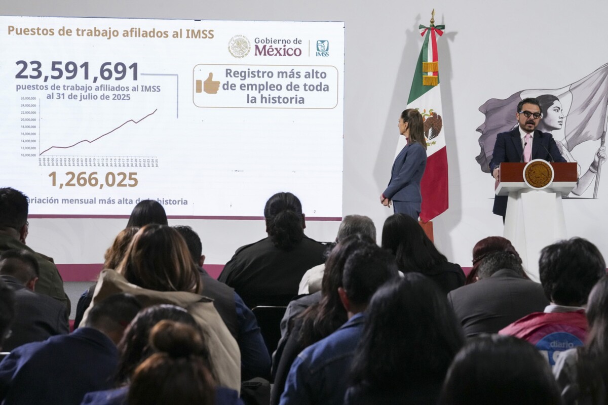 Zoé Robledo Aburto, director del IMSS, subrayó que este esquema ha permitido romper récords históricos en empleo formal. Al 31 de julio alcanzamos los 23 millones 591 mil 691 puestos de trabajo registrados ante el IMSS, el número más alto en la historia del país, afirmó. Detalló que el crecimiento mensual fue de un millón 266 mil 25 puestos, impulsado principalmente por el aseguramiento de trabajadores de plataformas digitales.
