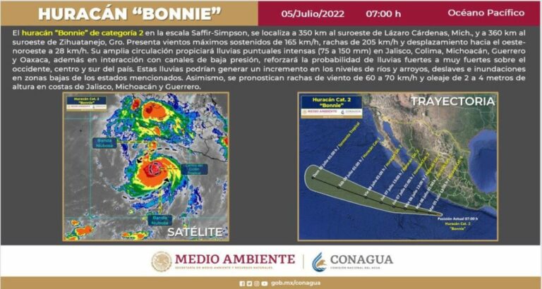 Bonnie es el tercer huracán de la temporada 2022 en el Pacífico mexicano.