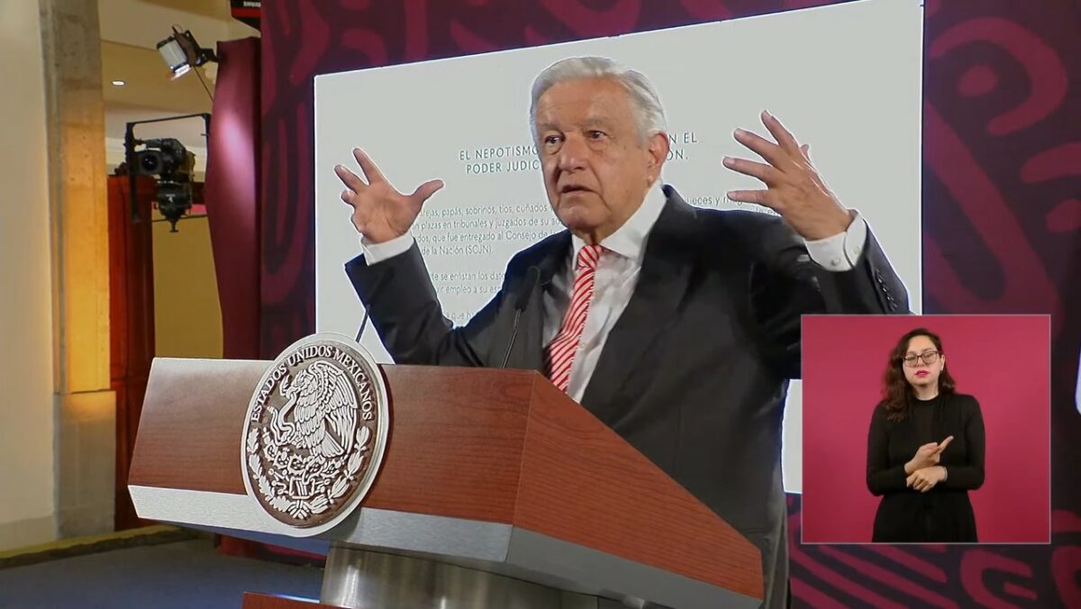 “Ah, pero el Poder Judicial sigue intacto. Igual. Poder Ejecutivo, reformado; Poder Legislativo, reformado; Poder Judicial, igual que siempre. Porque era como un enigma el Poder Judicial, nadie sabía nada, al grado que hasta la misma presidenta reconoce… creo que el 40, dijo el 45 por ciento (de los trabajadores), son familiares. Es el poder de la familia, o sea, es el DIF. El nepotismo a todo lo que da. Imagínense un poder en donde la mitad de los que trabajan son familiares, y lo que hacen los jueces, magistrados y ministros. Mañana vamos a informar todo, todas las violaciones a la Constitución, a las leyes, la protección a la delincuencia de cuello blanco, a la delincuencia organizada”.
