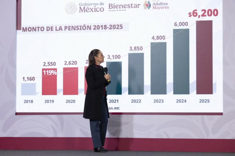 Con la llegada de la Cuarta Transformación, en 2019 se estableció la Pensión Universal para personas mayores de 68 años y de 65 años en comunidades indígenas. Ese año, el apoyo fue de 2 mil 550 pesos bimestrales, mientras que para 2025 alcanzó los 6 mil 200 pesos.