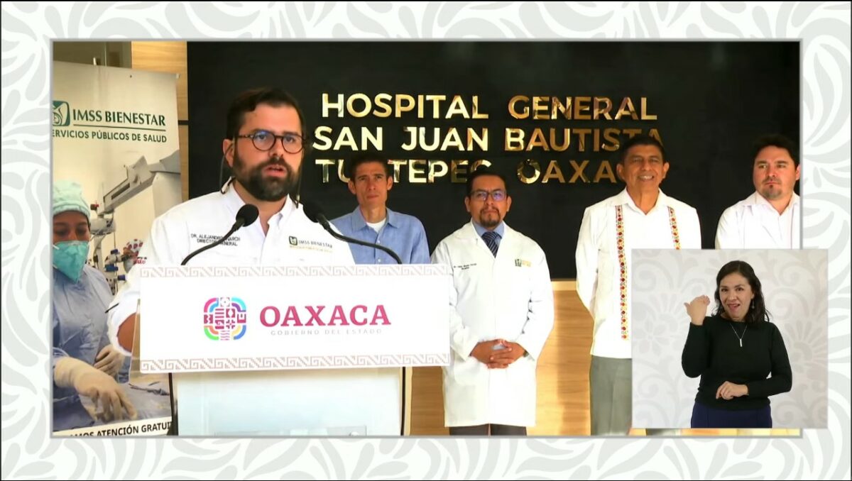 La presidenta Claudia Sheinbaum, el gobernador de Oaxaca, Salomón Jara, y el titular del IMSS Bienestar, Alejandro Svarch, encabezaron el arranque de la primera etapa de operaciones del Hospital General San Juan Bautista de Tuxtepec.