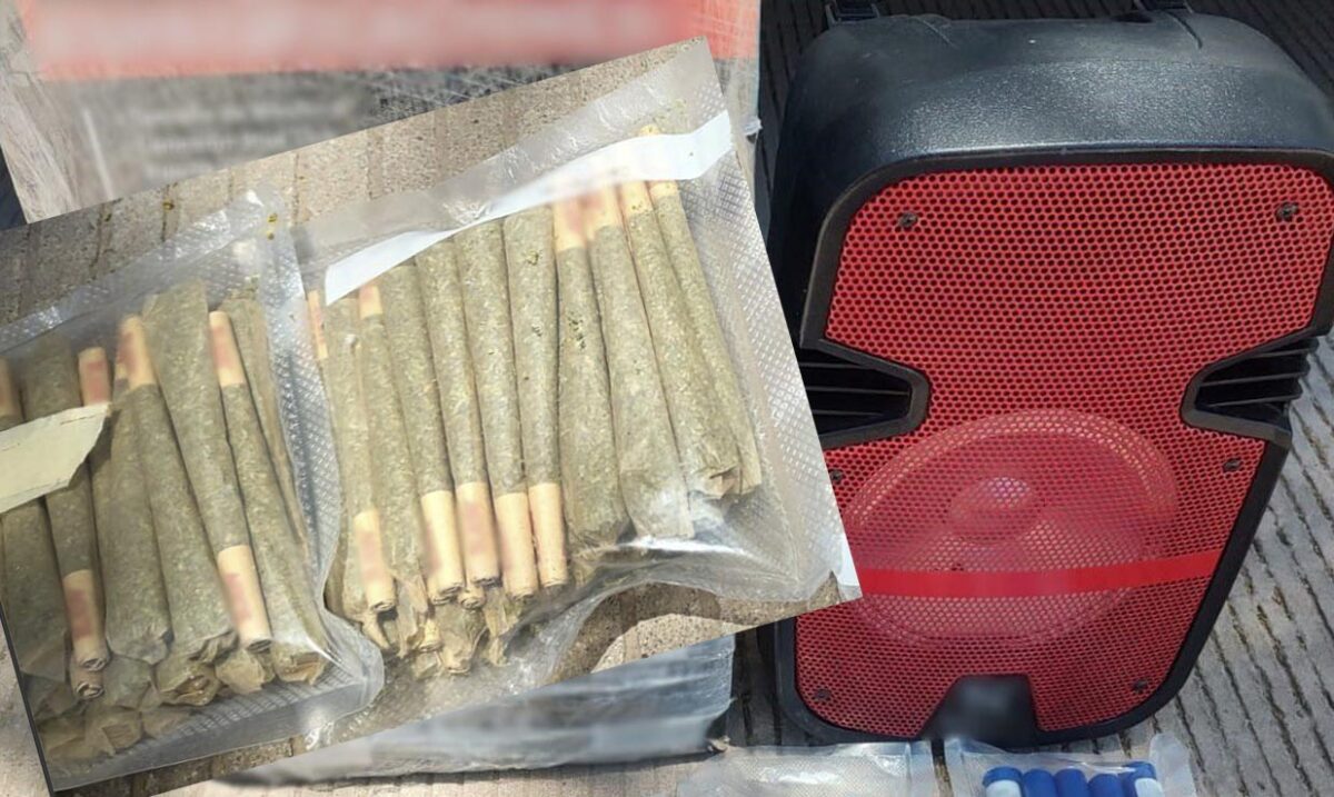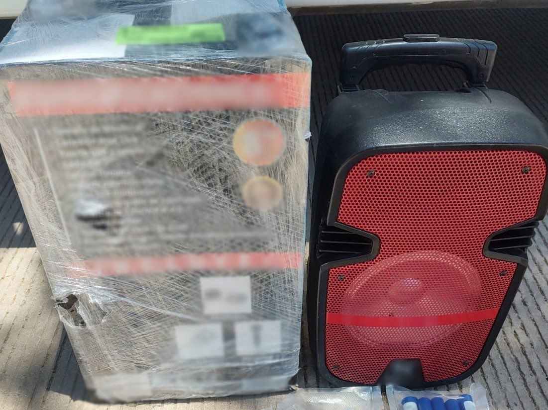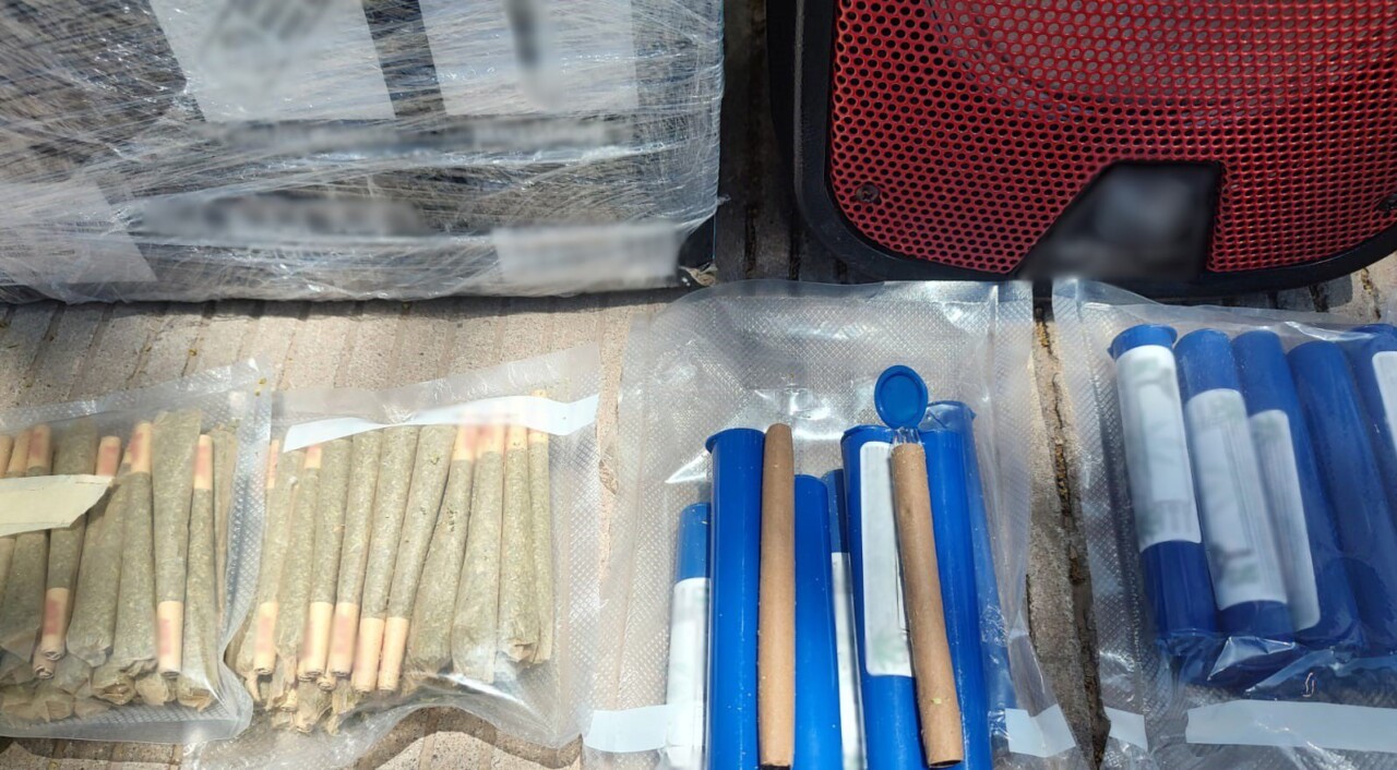 En su interior encontraron una bocina tipo bafle con bluetooth, la cual al desarmaría, se percataron de que se encontraba repleta de cigarros elaborados con hierba seca con el característico olor y apariencia de la mariguana.