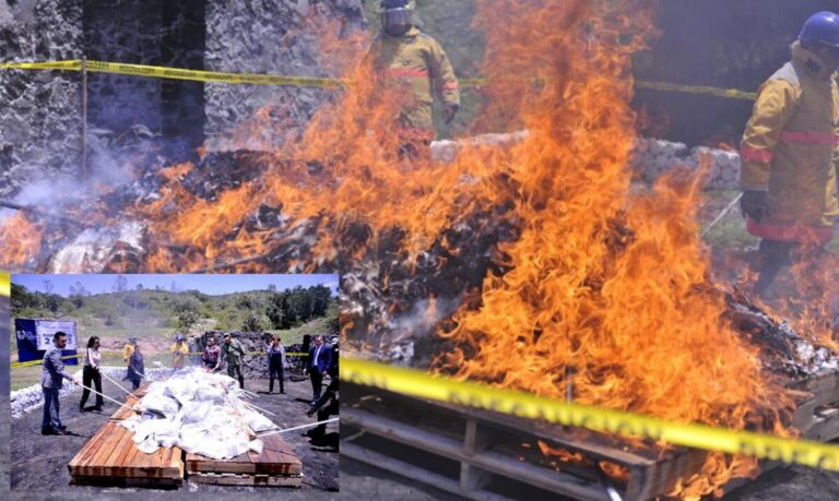La dependencia detalló que la quema de los estupefacientes, se realizó en el Campo Militar No. 37-A Elpidio Samuel Meras Arriola, ubicado en el municipio de San Juan Teotihuacán, Estado de México.