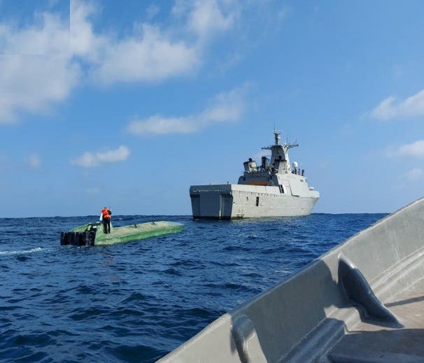 Esta acción se llevó a cabo tras una operación de patrullaje aérea y marítima, con apoyo de una aeronave tipo King Air de la Armada de México, desde donde se avistó una embarcación sospechosa tipo semisumergible con cuatro motores fuera de borda.