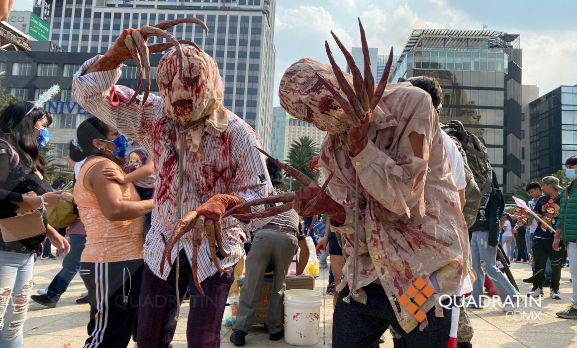 Aunque no forman parte de las tradiciones mexicanas, sino más bien del Halloween, el gusto de los capitalinos por lo extranjero ha asimilado también esta manifestación relacionada con la muerte, en donde los zombis son protagonistas infaltables.