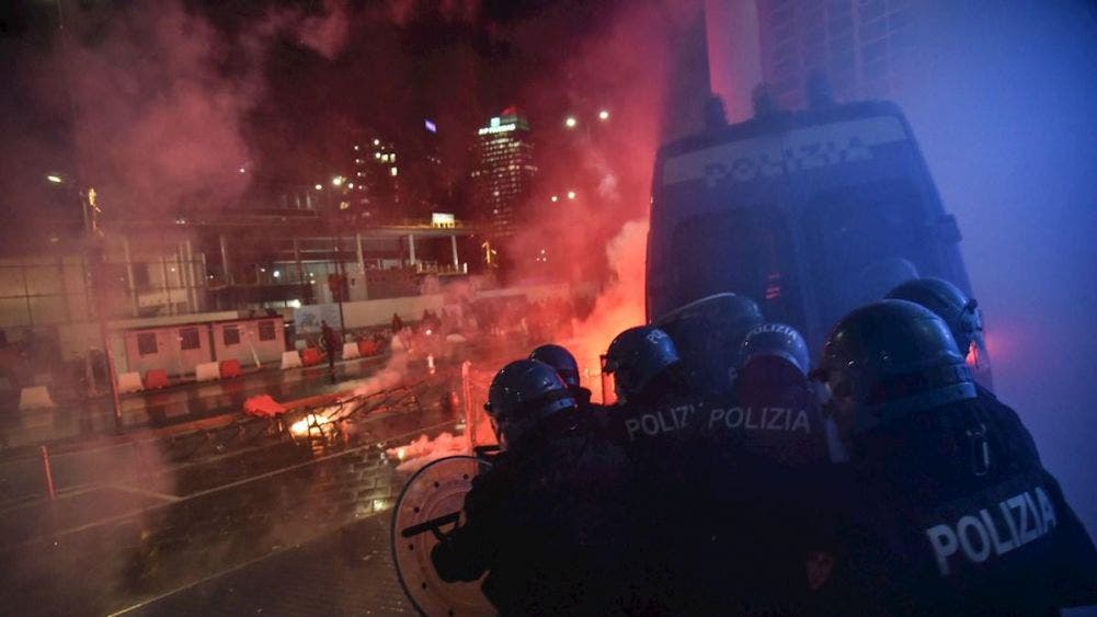 En Turín, algunos manifestantes se separaron de una protesta pacífica y rompieron los escaparates de una elegante calle comercial, activando bombas de humo y arrojando botellas contra policías en la plaza principal de la ciudad, donde se ubica la sede del gobierno de la región de Piamonte, reportaron medios de la localidad.