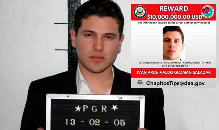 Actualmente, el Departamento de Justicia de Estados Unidos mantiene activa una recompensa de hasta 10 millones de dólares por información que conduzca a la captura de Iván Archivaldo Guzmán Salazar, a quien identifica como uno de los principales responsables del tráfico de fentanilo hacia ese país, además de acusarlo por delitos relacionados con armas, lavado de dinero y participación activa en el Cártel de Sinaloa.