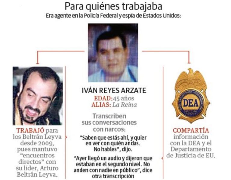 “La Reina” fue el contacto de México con la Administración de Control de Drogas (DEA) y está acusado de favorecer y filtrar información a cárteles de la droga, en particular el Cártel de Sinaloa y el de los Beltrán Leyva.