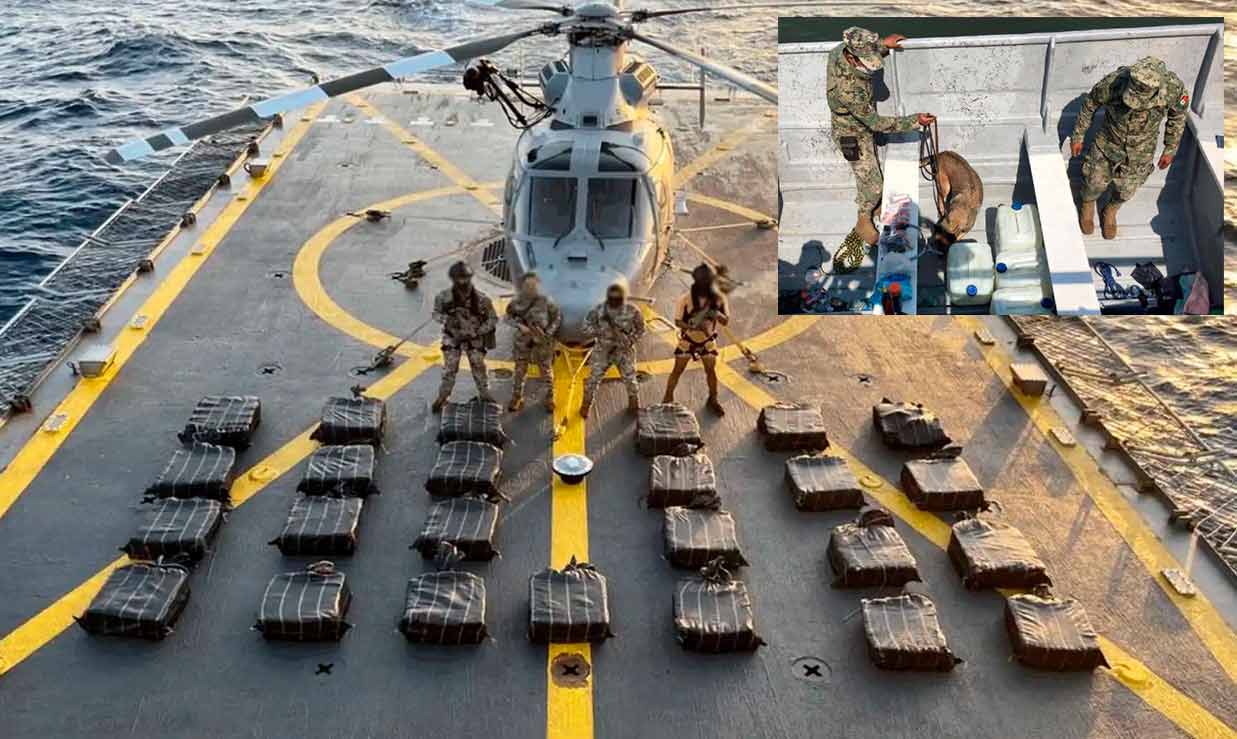El operativo naval se llevó a cabo a unas 550 millas náuticas, es decir, alrededor de mil kilómetros, al suroeste del puerto de Lázaro Cárdenas. La nave, que cuenta con tres motores, fue localizada en una zona remota del océano Pacífico, lo que sugiere que su tripulación intentaba evadir la vigilancia marítima para realizar el tráfico de sustancias ilícitas.