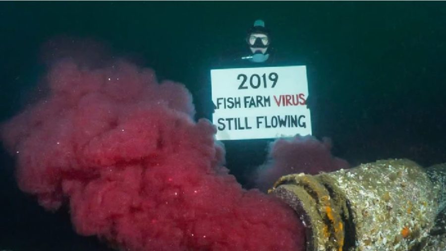 En el otoño del 2017, el fotógrafo Tavish Campbell tuvo un presentimiento y se sumergió hasta el fondo del canal del pasaje Discovery, en la isla de Vancouver de la provincia de la Columbia Británica. Sospechaba que la planta procesadora de salmones del Atlántico que había cerca del lugar, Brown’s Bay Packing, tenía una tubería de desagüe en el fondo del canal, donde viven los salmones rojos.