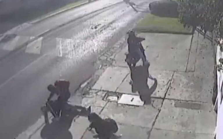 En un video difundido en las redes sociales se observa cómo los ladrones se suben al andén por donde transitan un hombre y una mujer, y les piden sus pertenencias.