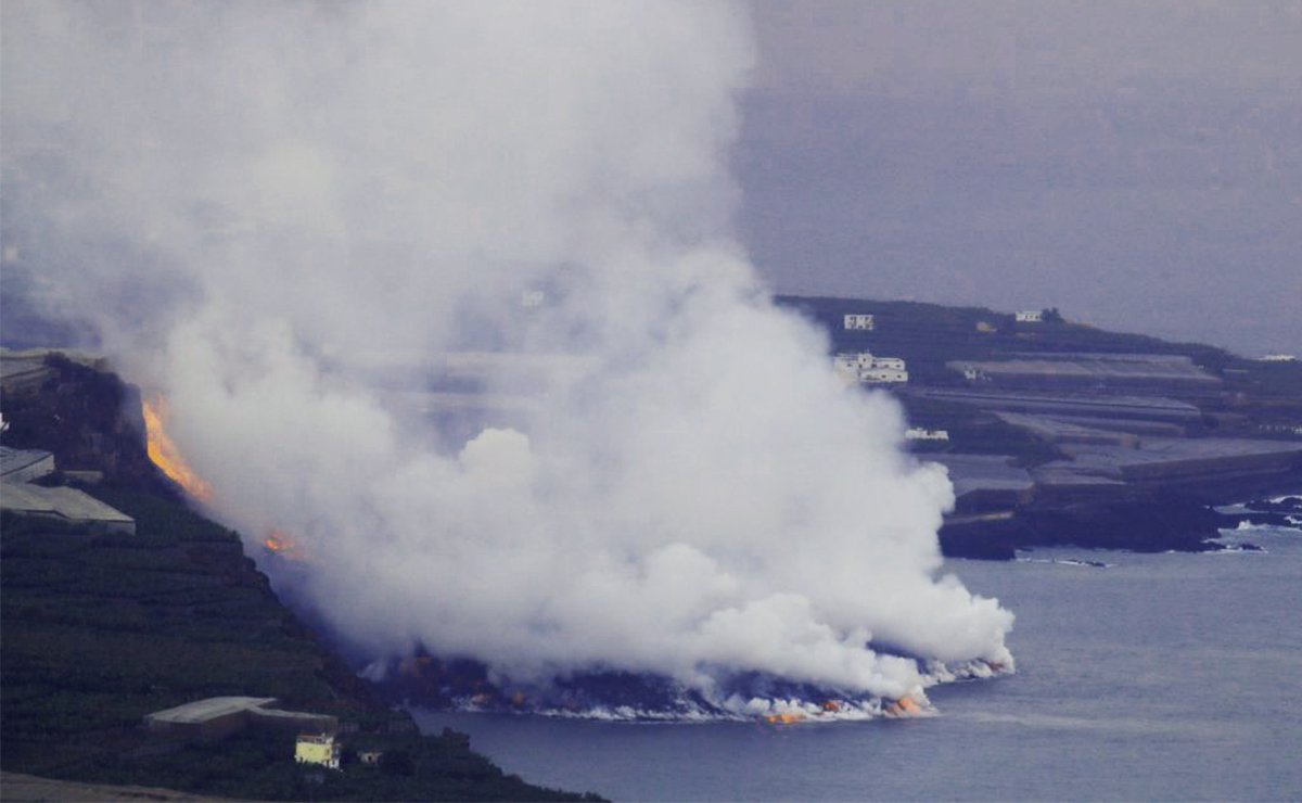 La desembocadura del magma en el océano es un fenómeno que preocupa a las autoridades desde que la erupción comenzó el domingo 19 de septiembre, porque su reacción con el agua salada provoca nubes tóxicas.