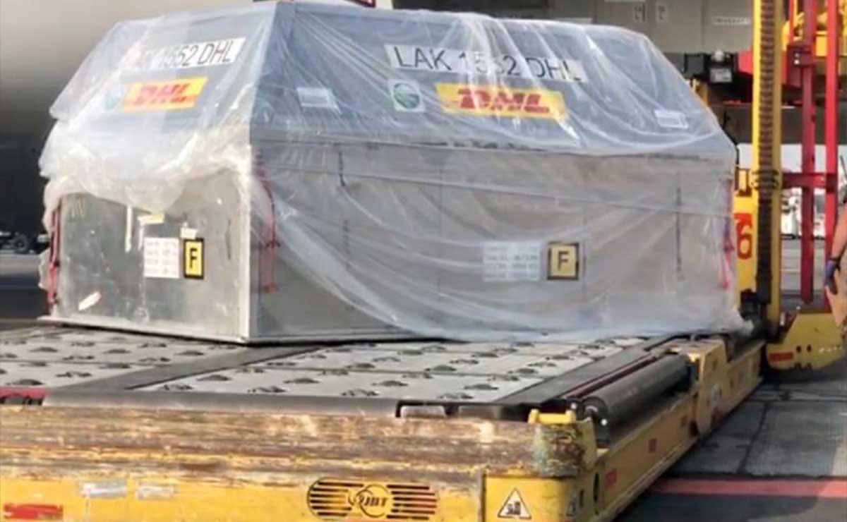 Según información, el embarque de vacunas llegó al Aeropuerto Internacional de la Ciudad de México consta con 228 mil 150 dosis, las cuales se sumaron a los lotes anteriores.
