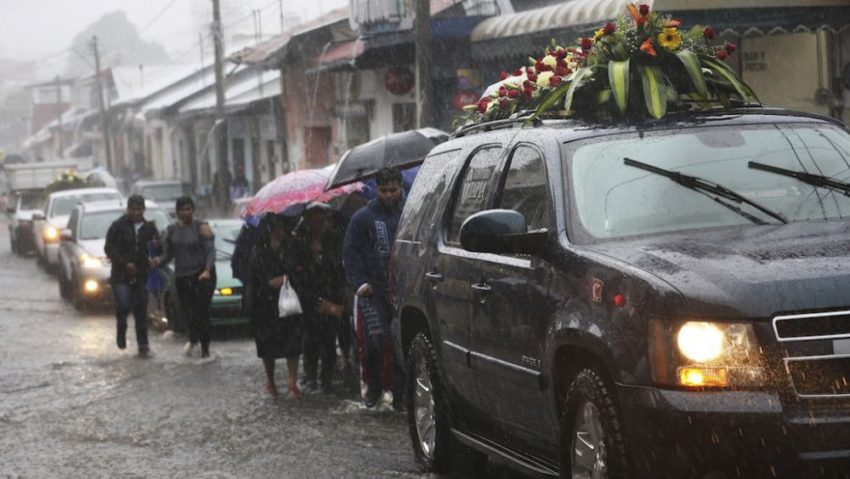 “Ya me cansé de llorar”, dijo Gutiérrez mientras la familia enterraba a Miguel Ángel. “Se nos acaba el agua, nos llegó la del cielo”, dijo mientras señalaba a la intensa lluvia.