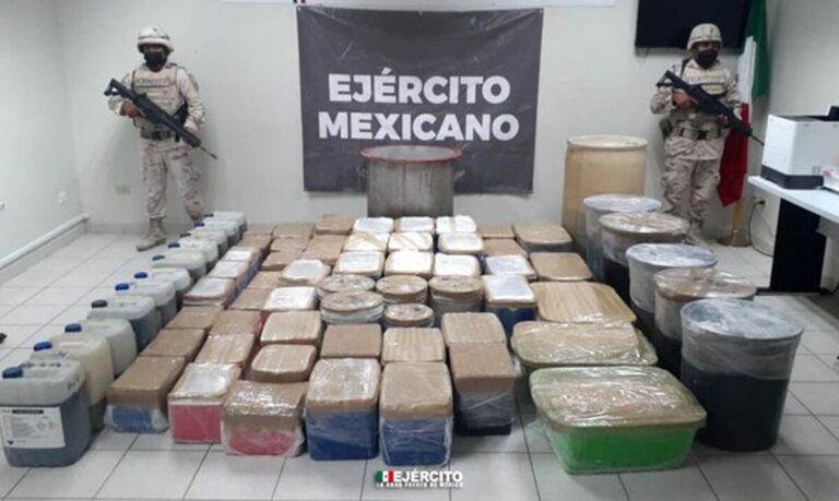 A través de un comunicado difundido a través de la red social Twitter, la Sedena detalló que el pasado 13 de julio, a través de trabajos de inteligencia, coordinación interinstitucional y la planeación operativa, personal del Ejército Mexicano junto con la Guardia Nacional, realizaba patrullajes de vigilancia hacia el ejido Las Adelitas, en el municipio de San Luis Río Colorado, Sonora, con el objeto de localizar un almacén presuntamente empleado para actividades de producción, acopio y trasiego de droga sintética.