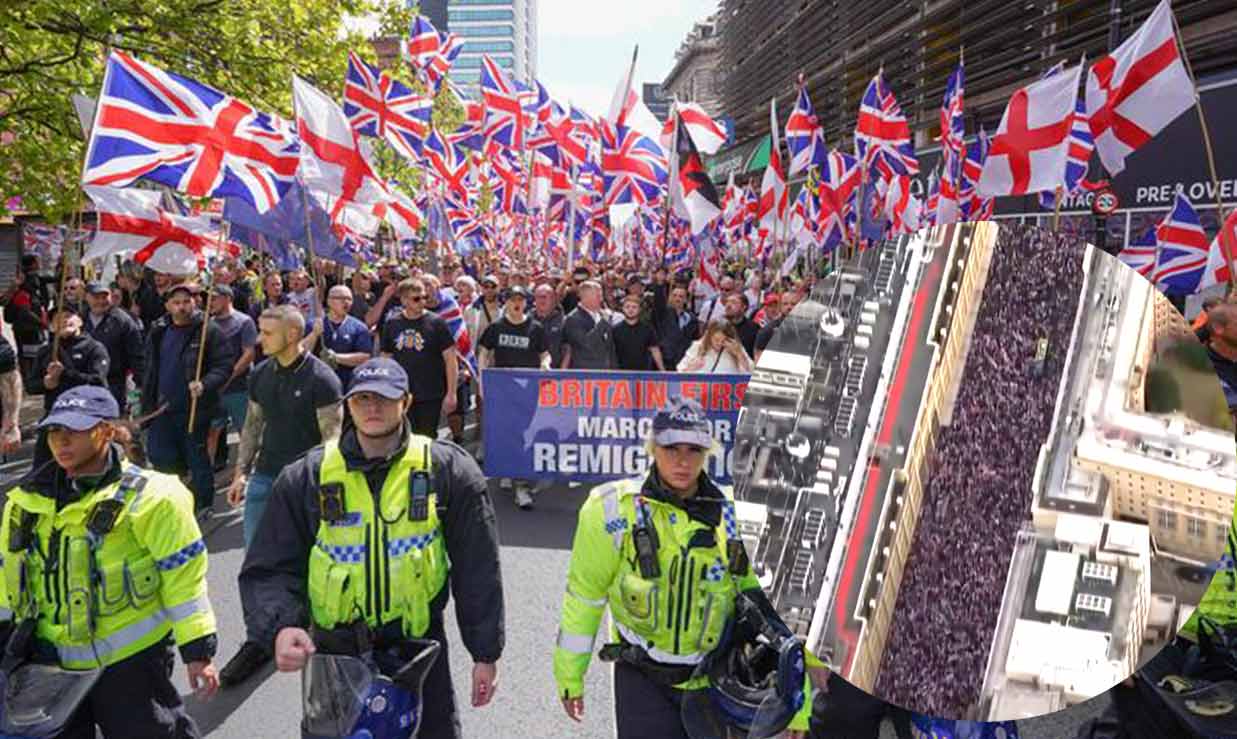 La movilización, cargada de banderas del Reino Unido y consignas hostiles tanto hacia el primer ministro Keir Starmer como hacia comunidades migrantes —en especial las de origen musulmán—, evidenció una polarización social en aumento.