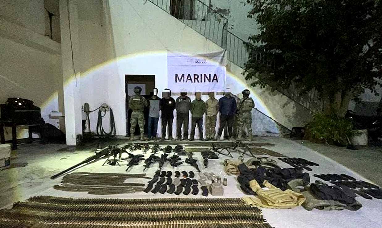Un operativo realizado por personal naval de la Secretaría de Marina (Semar) en un municipio costero de Sinaloa produjo el decomiso de un importante arsenal y la captura de seis personas.