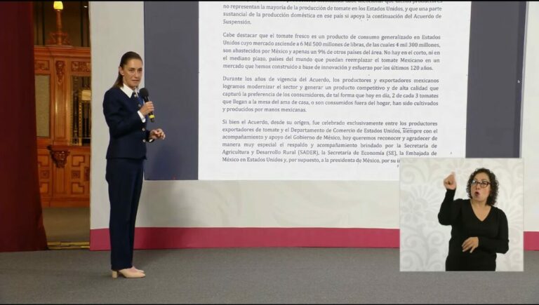 La presidenta señaló que la mayor producción de tomate rojo en Estados Unidos se da en Florida, y son los productores de ese país quienes han buscado que se imponga el arancel a las exportaciones mexicanas.
