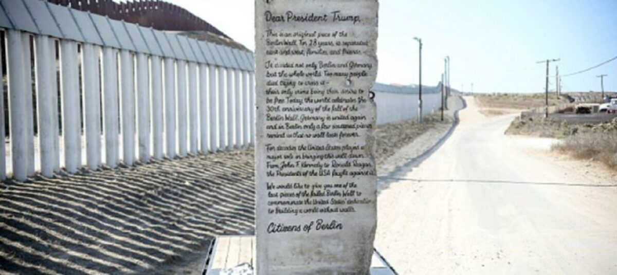 Mientras el gobierno de Estados Unidos construía su más reciente tramo de cercado fronterizo, México mandó su propio mensaje al colocar restos del muro de Berlín a unos pasos de distancia.