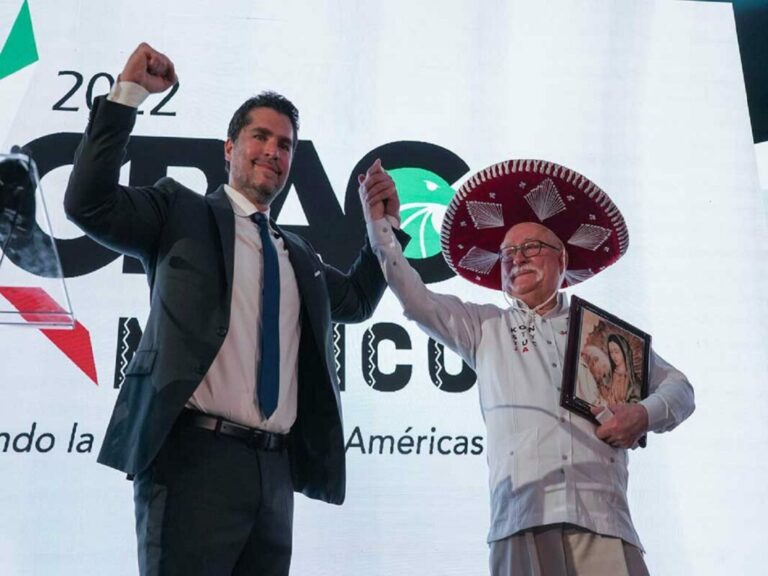 El ultraconservador Eduardo Verástegui presentado al también ultraconservador líder polaco Lech Walesa.