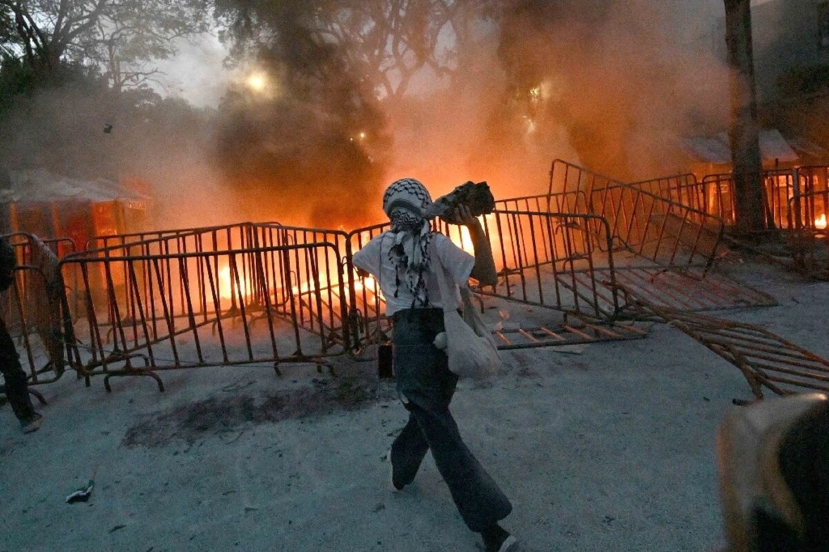 A través de consignas contra el Gobierno del primer ministro Benjamin Netanyahu, los manifestantes lanzaron objetos incendiarios, bombas de humo y piedras a la sede diplomática, donde acusaron a Israel de cometer genocidio en contra de Palestina.