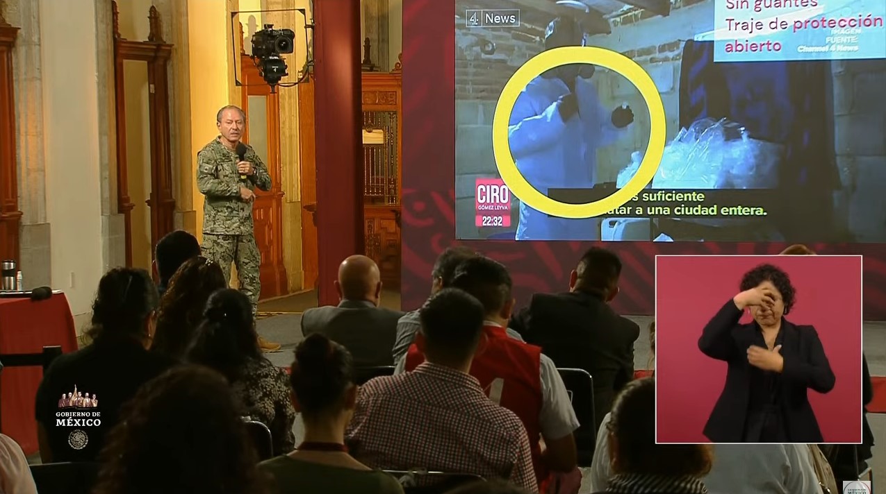 Enseguida se transmitió el video con la explicación del almirante José Rafael Ojeda, secretario de Marina, sobre la manipulación de las imágenes y las afirmaciones falsas respecto a que se trata de laboratorios de fentanilo.