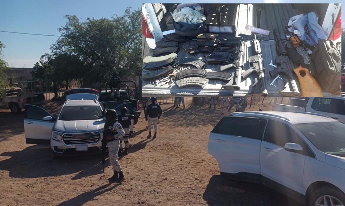 Extrañamente abandonados a un costado de una carretera en las inmediaciones del municipio de Guaymas, Sonora, elementos militares del Ejército Mexicano y de la Guardia nacional encontraron varios vehículos en cuyo interior había varias armas largas, material bélico y drogas.