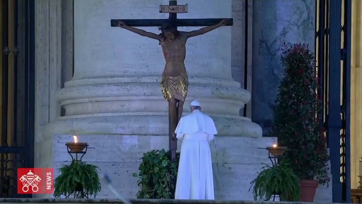 Fue la primera vez en la historia milenaria de la Iglesia católica que el papa rezó en solitario ante la inmensa plaza vacía de San Pedro.