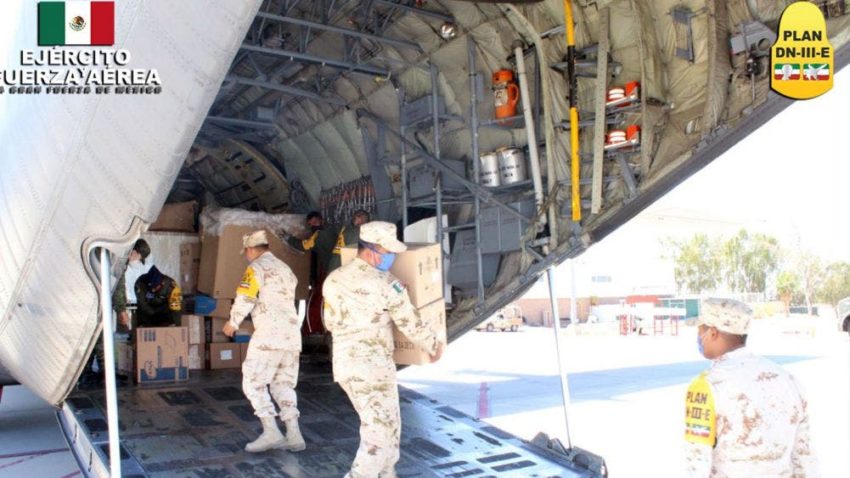 También se han usado cuatro aviones de la Fuerza Aérea Mexicana (FAM; se han establecido 25 rutas, con las que se han traslado 170 toneladas de materiales, para los hospitales e instalación Covid de la Sedena; entre el 28 de abril y el pasado 20 de mayo.