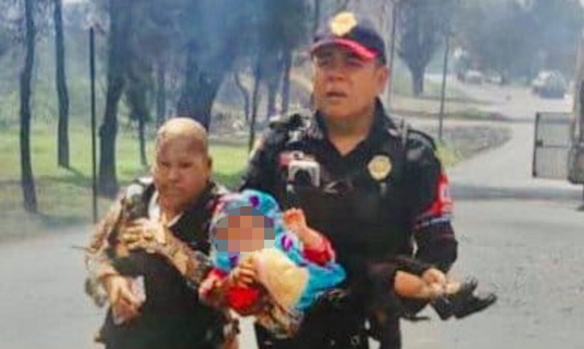 Un agente de la Policía Bancaria e Industrial (PBI) fue uno de los primeros en acercarse cuando ve a la mujer caminar por la avenida. “Córrele, el niño. ¿Cómo está? Dámelo”, le pide a la mujer, que sólo puede emitir quejidos. El oficial toma a la bebé, mientras se nota cómo los restos de ropa pegada a la piel de ambas se separa con dificultad.