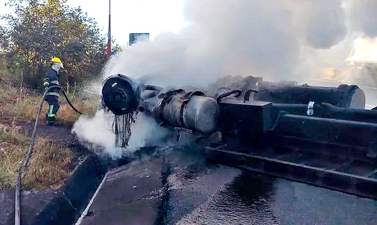 De acuerdo con información proporcionada por la Secretaría de Protección Civil del estado, el tractocamión sufrió una aparatosa volcadura, lo que generó un fuerte incendio que complicó aún más las labores de rescate.