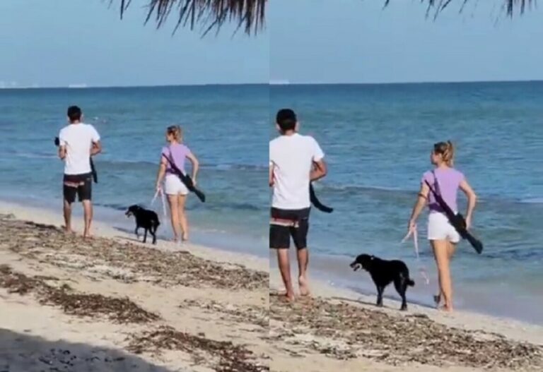 “Videos difundidos en redes sociales mostraban a la mujer caminando por la playa en compañía de un hombre y dos perros; a la espalda portaba el rifle, lo cual causó temor en algunas personas al creer que podría ser un arma de fuego.