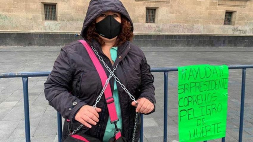Mujer se encadena frente al Palacio Nacional para que escuchen sus demandas