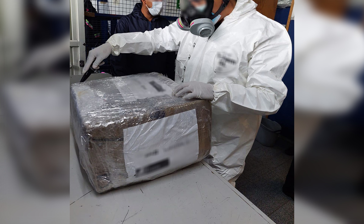 El paquete tenia una dirección de remitente procedente del país de Colombia, uno de los principales productores de este alcaloide, que a su vez es una de las drogas recreativas mas comercializadas tanto en México como en los Estados Unidos.