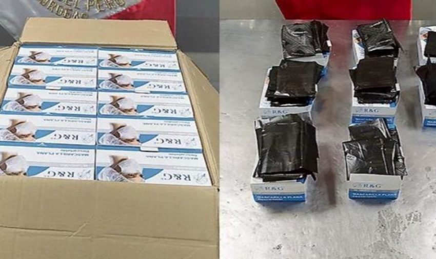 La policía peruana comunicó a The Associated Press que el paquete postal intervenido tenía más de un kilo de droga y estaba distribuido en cajas que contenían mascarillas de fabricación peruana.