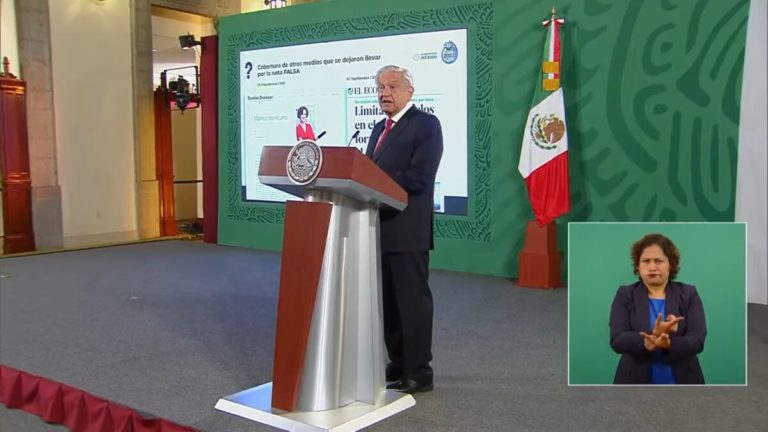 “Por último, vamos a presentar una nota falsa de El Financiero, de que el gobierno obligaría a las aerolíneas a operar en el Aeropuerto Internacional ‘Felipe Ángeles’.