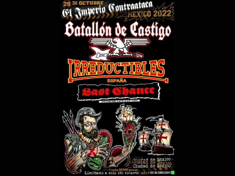 Batallón de Castigo, cabeza del cartel del concierto, es un grupo que se formó a principios de los 90 en la prisión de Alcalá-Meco, en Madrid. Su cantante, guitarrista y único miembro original en activo, Eduardo Clavero, estaba encarcelado por asesinar a un joven de 19 años, según El País. Clavero es también delegado del partido neonazi Alianza Nacional en Málaga (España). Su género es RAC-Trash Metal. El sitio que difunde la música de Royal Aces Convicted dice que la banda es “el verdadero sonido crudo del skinhead rock mexican”.