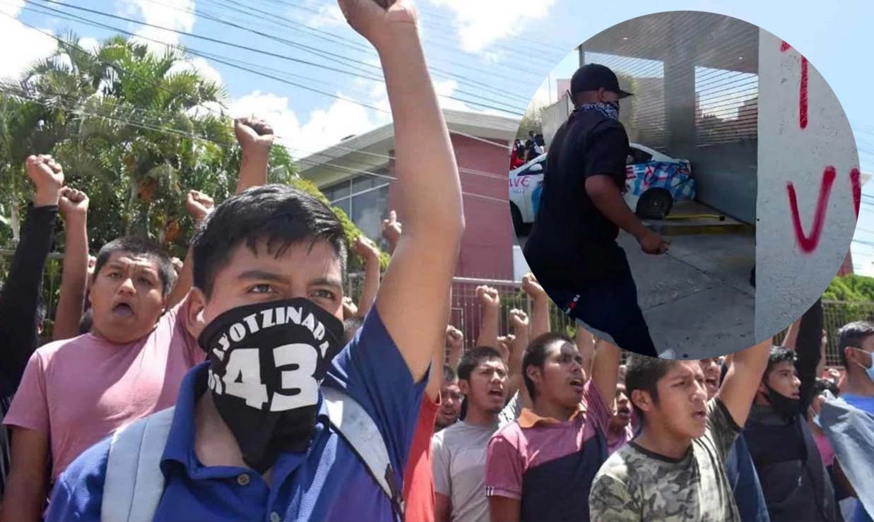 Normalistas roban autobuses y vandalizan edificios en Michoacán