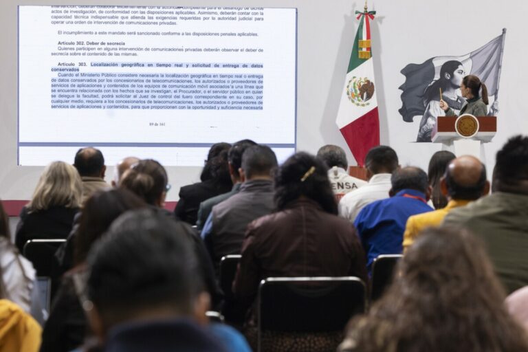 Sheinbaum detalló que el artículo 303 del Código Nacional de Procedimientos Penales, que no ha sido modificado, exige que cualquier solicitud de localización geográfica o entrega de datos conservados debe contar con autorización judicial. “La petición deberá ser resuelta por la autoridad judicial de manera inmediata por cualquier medio que garantice su autenticidad o en audiencia privada con la sola comparecencia del Ministerio Público”, explicó.